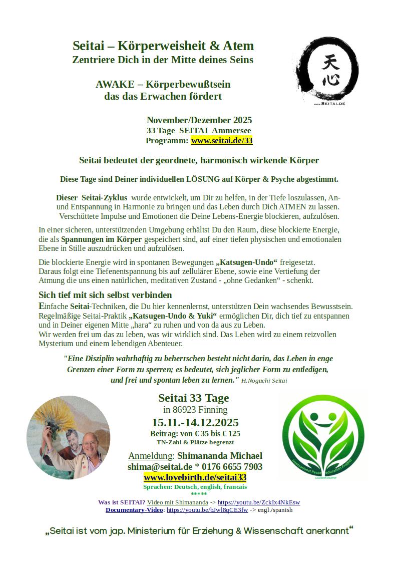 SEITAI - Körperweisheit & Atem - 33-Tage Seitai-Zyklus am Ammersee/München